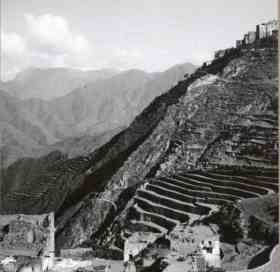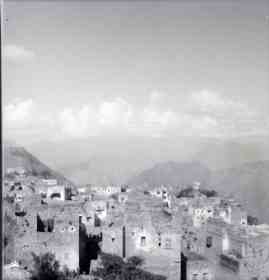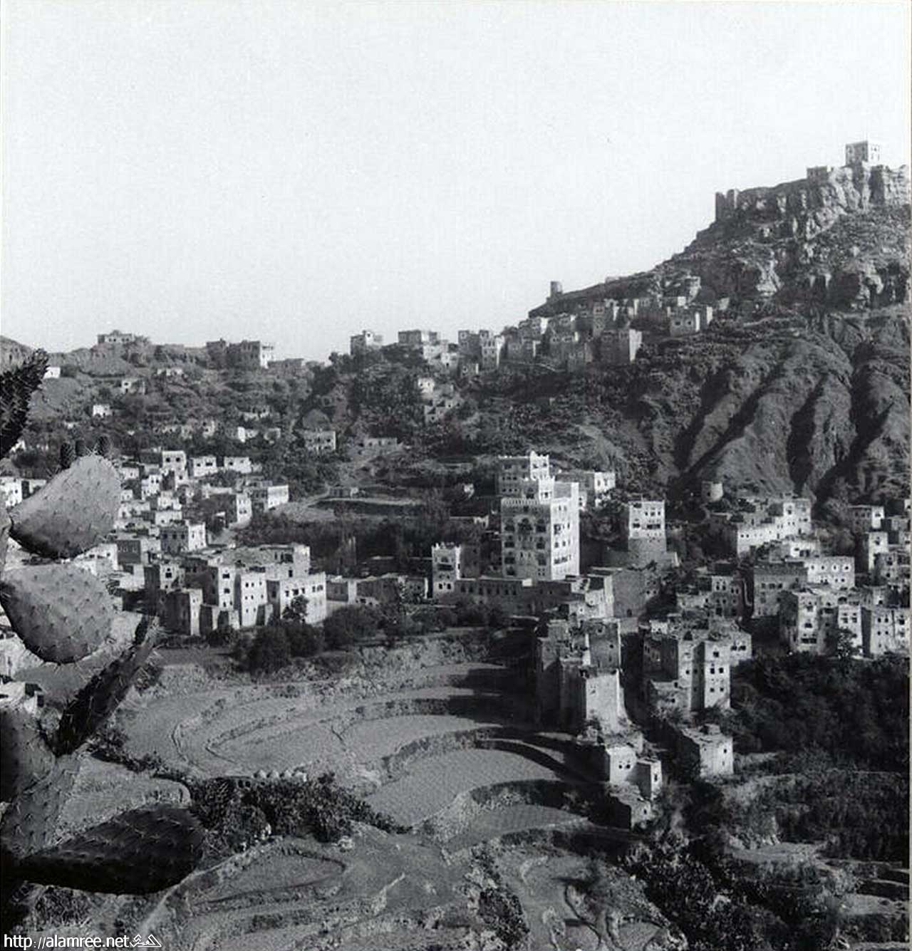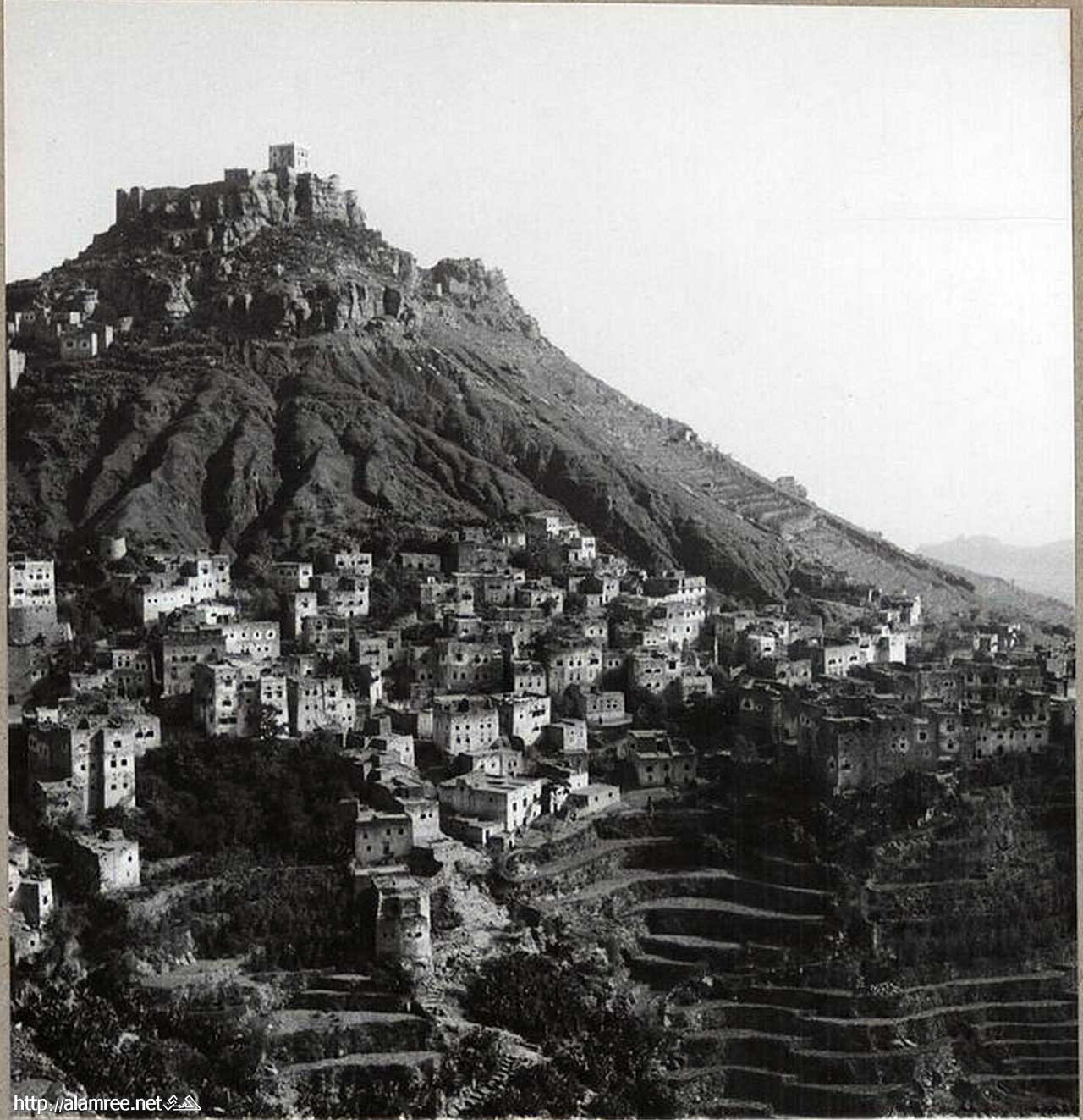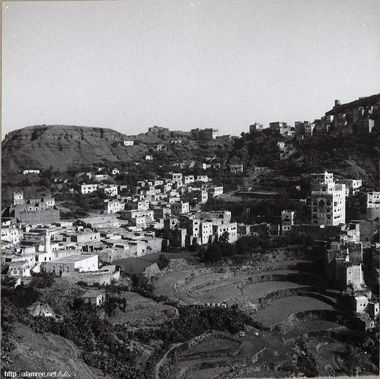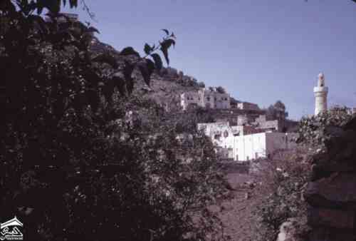 منظر عام لمدينة حجة. [الإنشاءات على الجبل والزراعات في المصاطب].