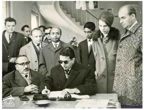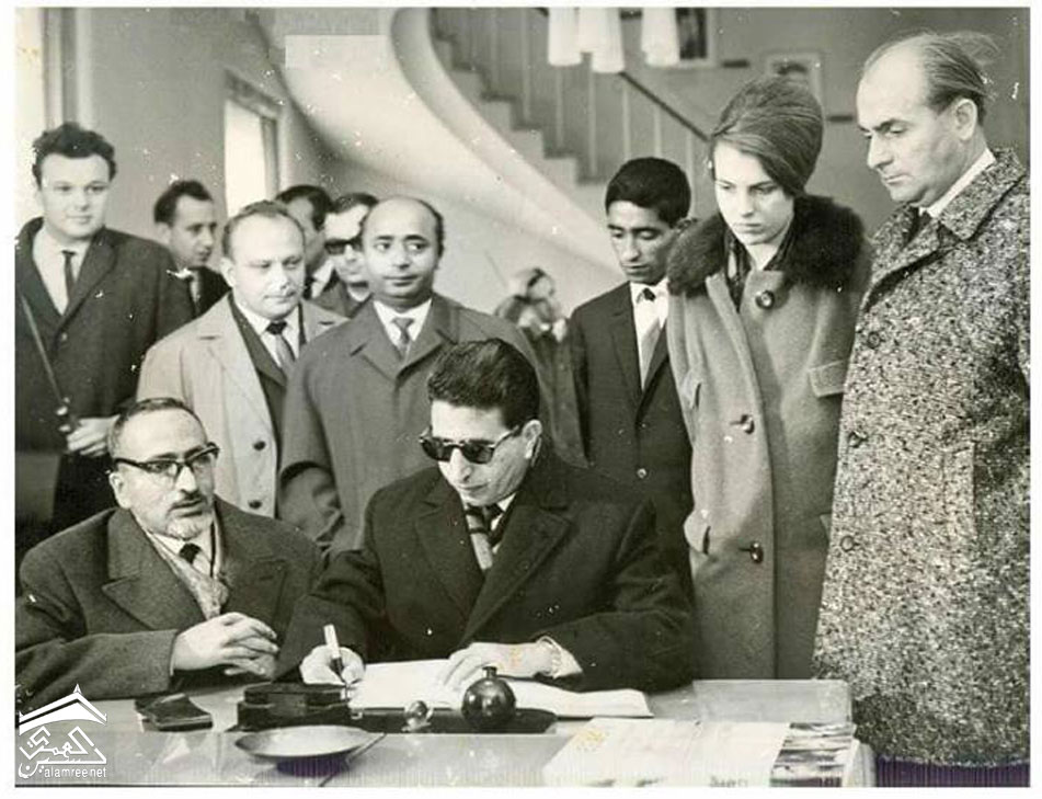حسن العمري و عبدالرحمن البيضاني أمام اول طببعه اوراق ماليه للجمهورية  الصورة عام 1963م