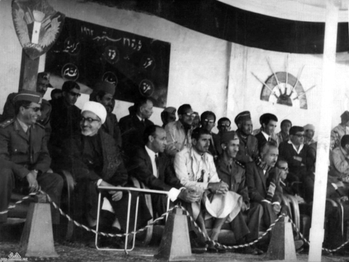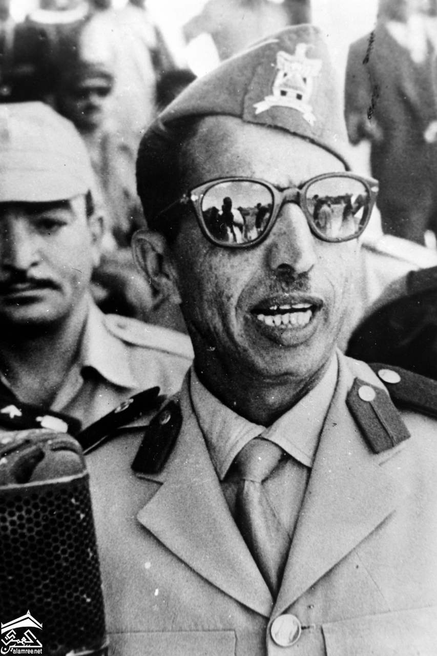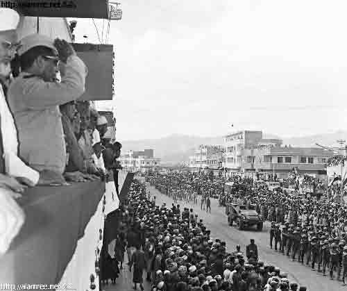الفريق حسن العمري  رئيس مجلس الوزراء والمفوض العام للجمهورية العربية اليمنية يحيي الجماهير خلال العرض العسكري في صنعاء  بالذكرى السنويه السادسه لقيام الجمهوريه،  في 5 أكتوبر 1968.