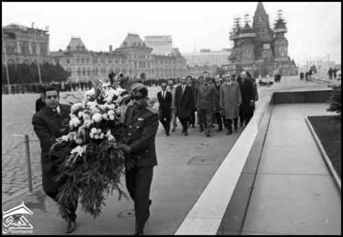 زيارة رئيس وزراء الجمهورية العربية اليمنية حسن العمري  إلى الاتحاد السوفيتي. اثناء زيارته الساحة الحمراء.