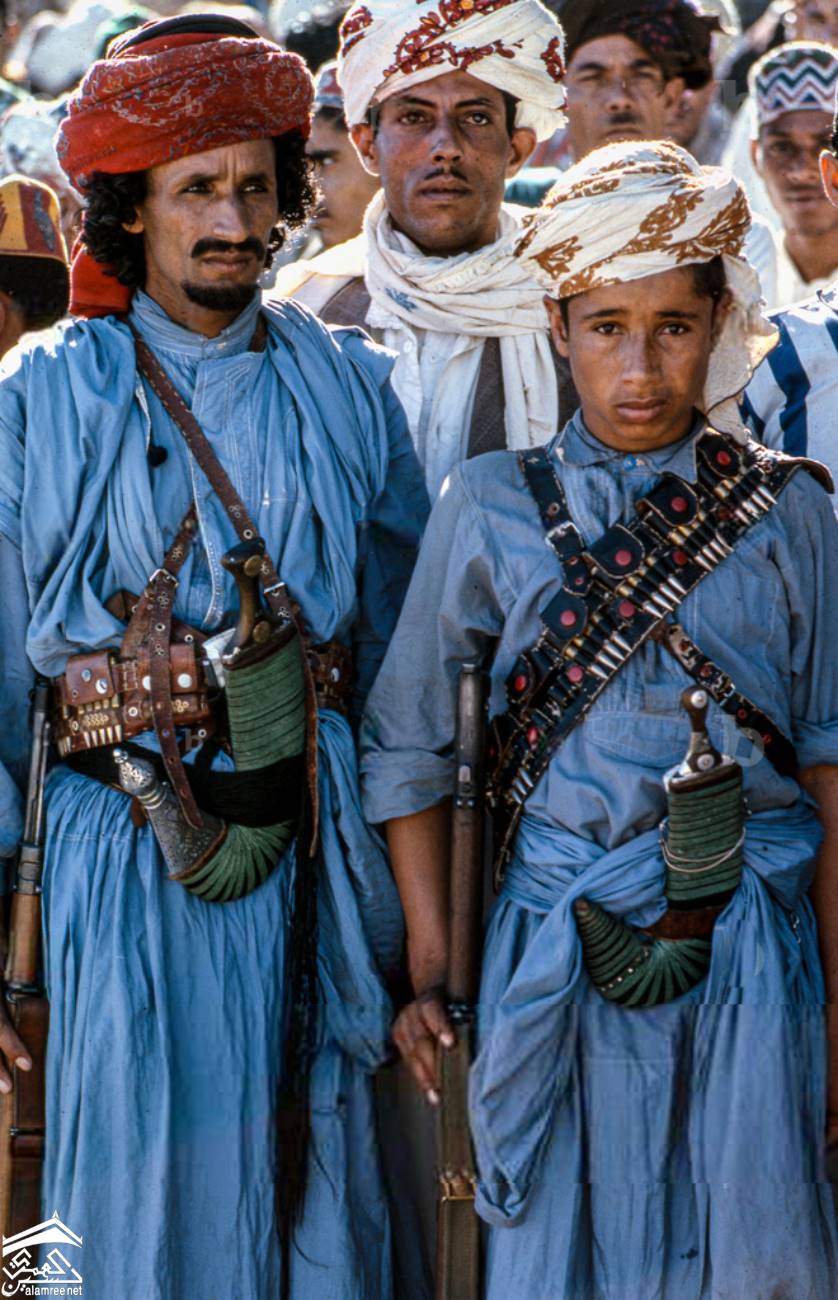 ثلاثة فتيان بعد خروجهم من سوق الدداج بصنعاء ثمانينيات القرن اماضي
