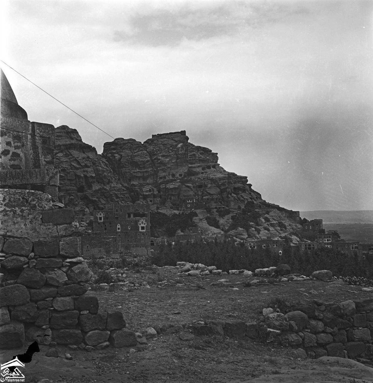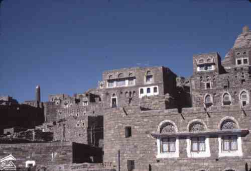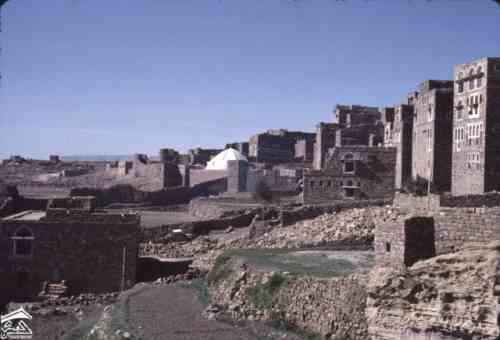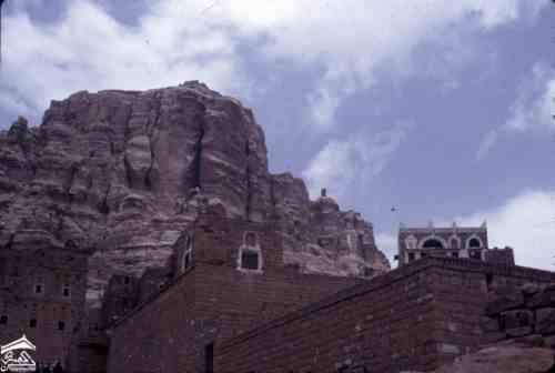 ثلا القلعة. مباني عند سفح نتوء صخري-1971م للمصوره الطبيبة كلودي فايين
