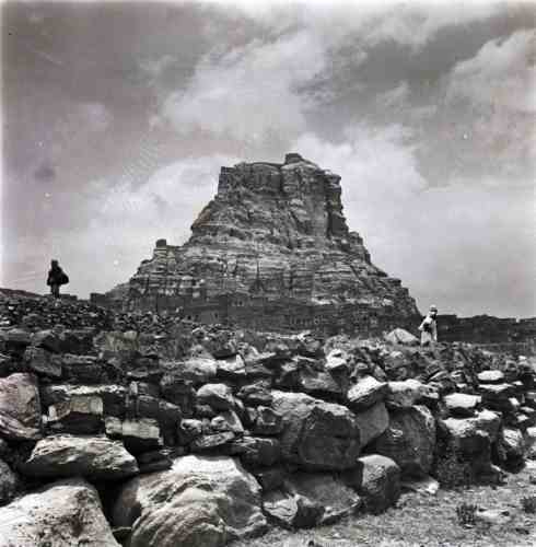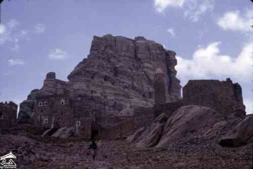 ثلا: الحصن. نتوء صخري في الخلفية. 1971م صورة للطبيبة كلودي فايين