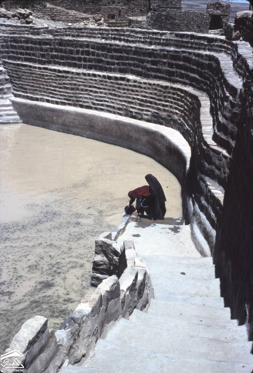 ثلا 1972 وخزان ماء وامراءة تتسلق الدرج بعد ملئ وعائها من الماء