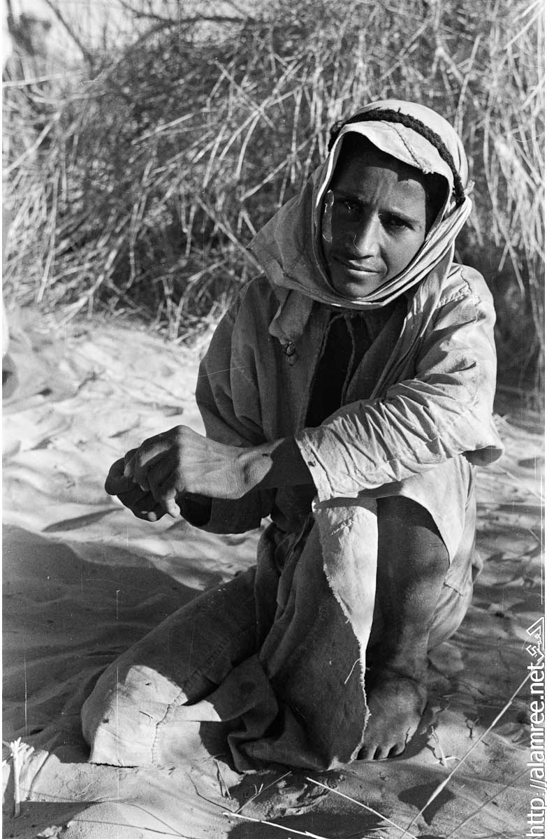 صورة لصبي من بدو الصيعر قبيلة بن معروف في منوخ جالسا على الارض