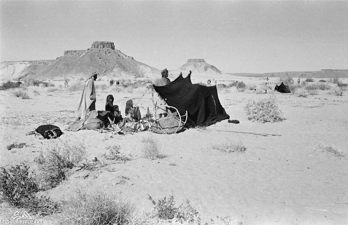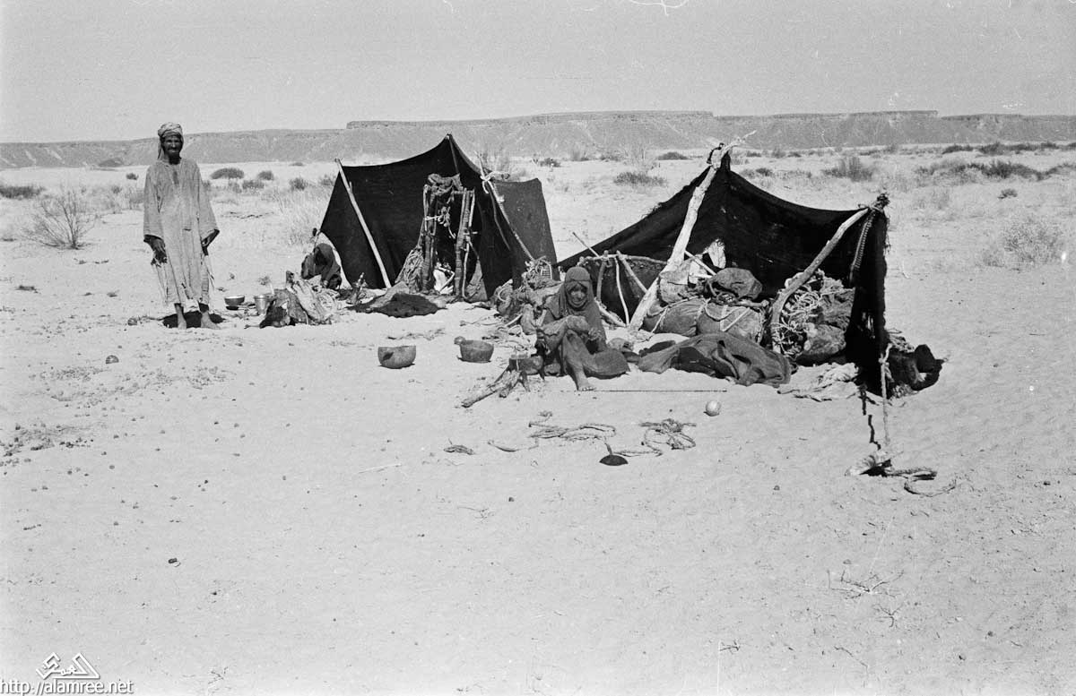 عرض لعائلة من قبيلة بن معروف من بدو الصيعر تجمعوا بجوار خيمتهم في منوخ . ووساده تكمن في الرمال حول الخيمة، ويرجح انها مصنوعة من شعر الماعز