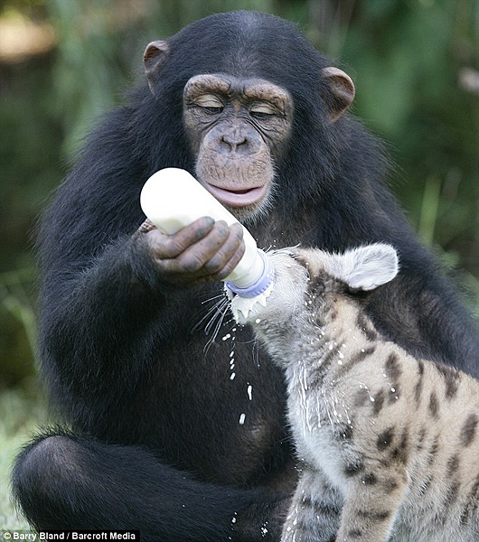 شمبانزي تصبح مربية لاسد صفير في حديقة الحيوان بالولايات المتحده الامريكية