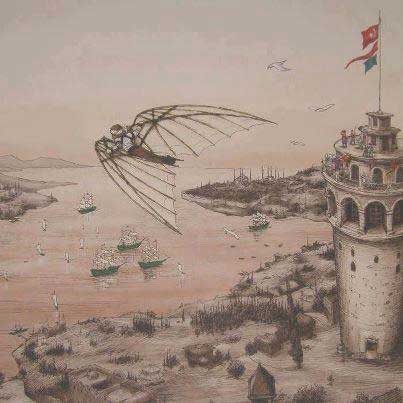 المنظر المذهل. طار "أحمد چلبي" من البرج قاطعًا