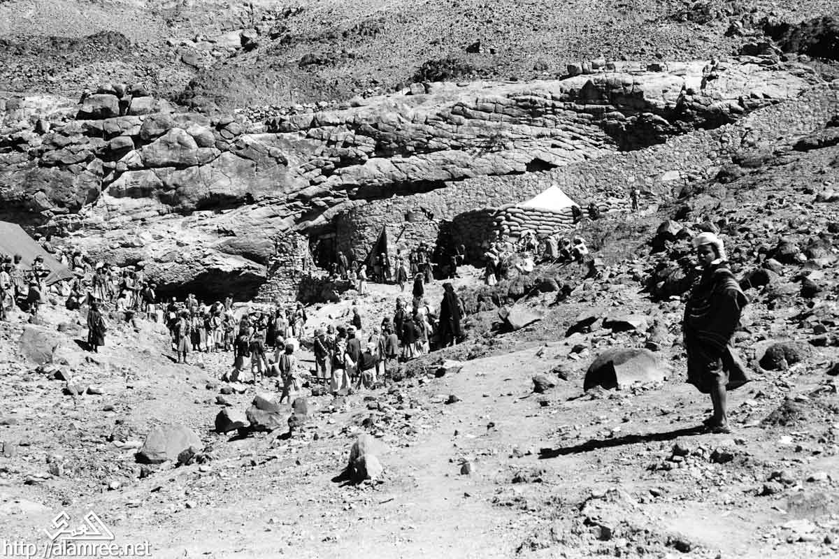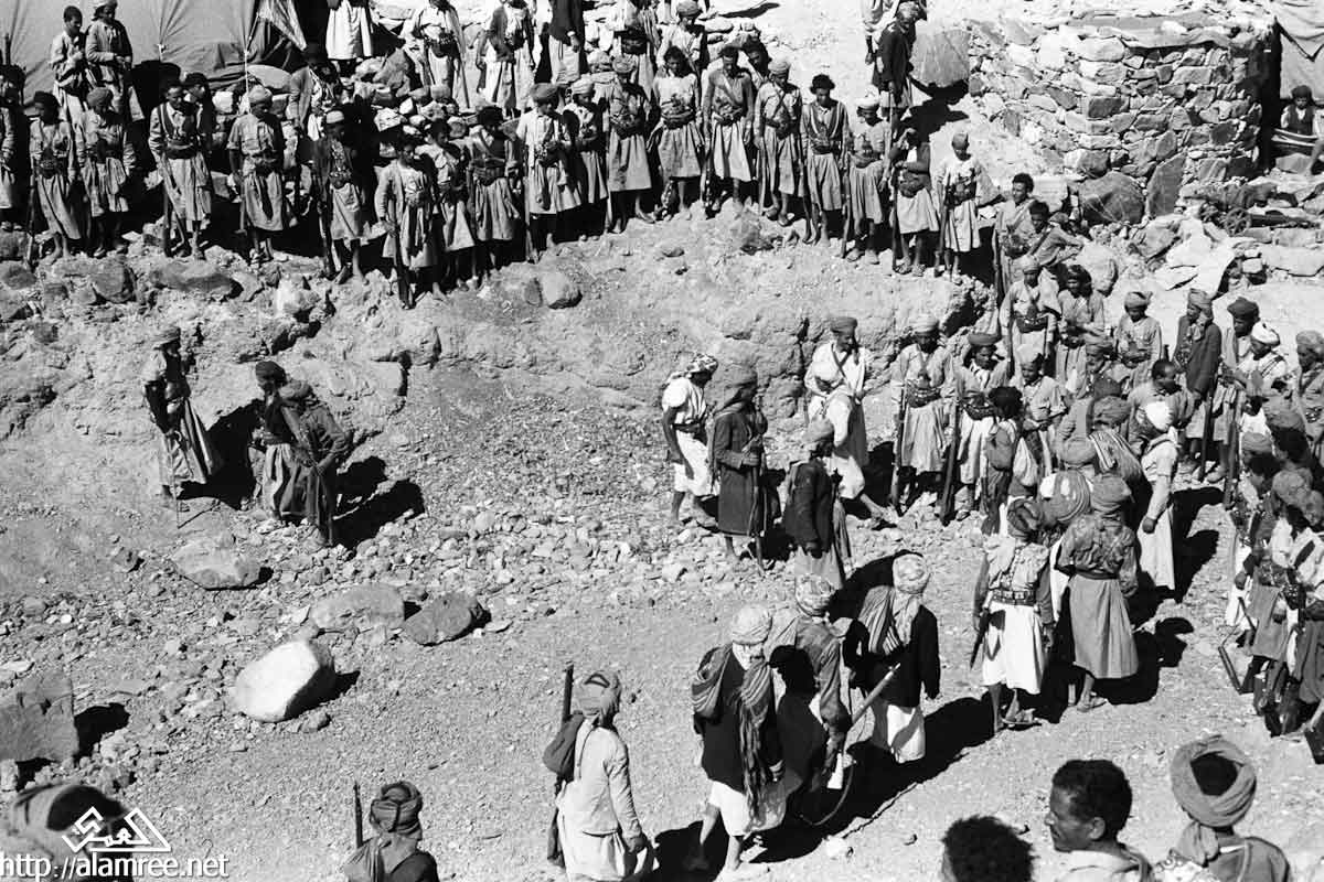 صوره لحشد من الرجال يرقصون في احد معسكرات الملكيين