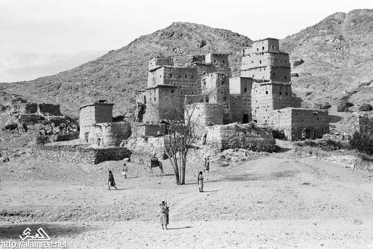 صوره لشاب وفي الخلفيه احدى القرى المبنيه من الطين