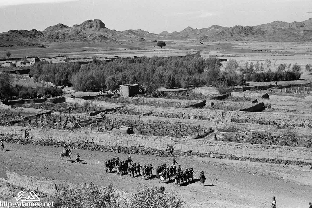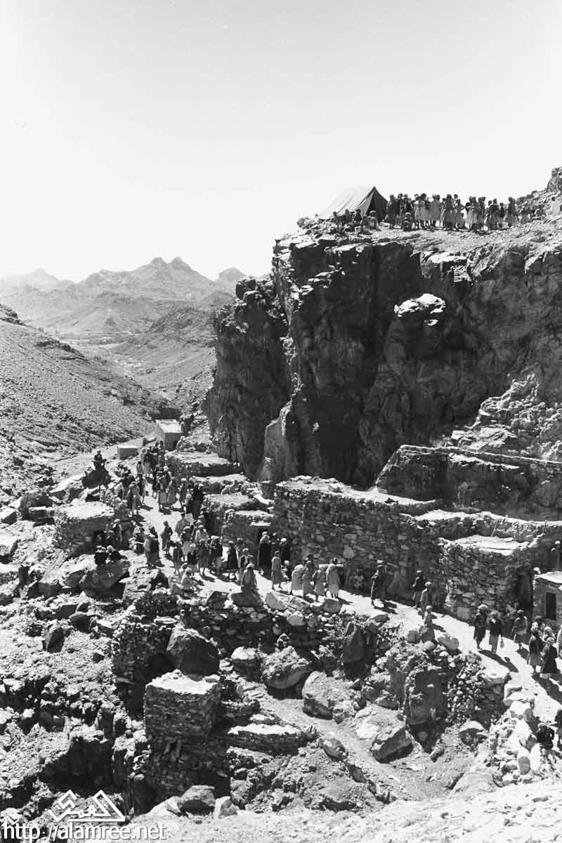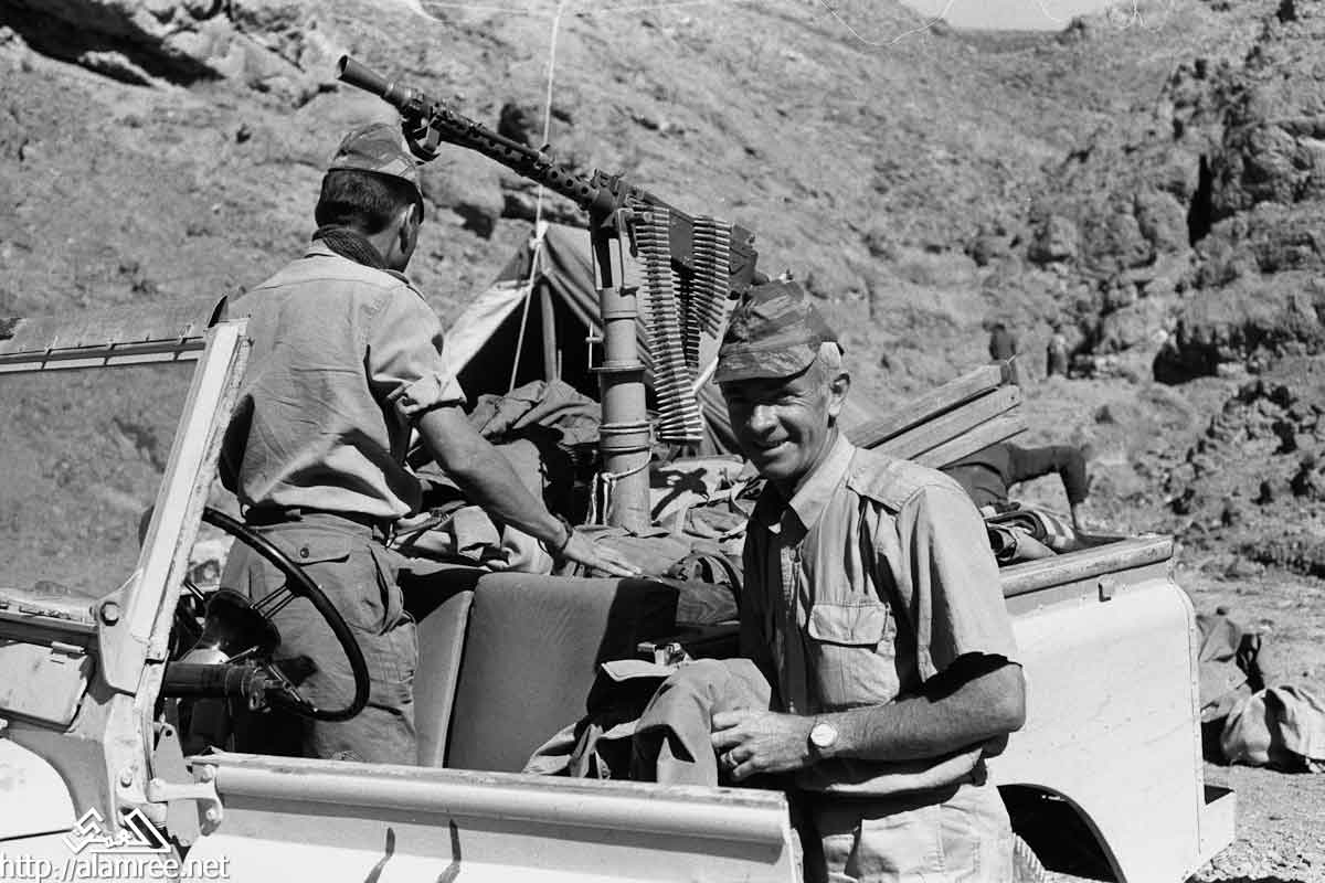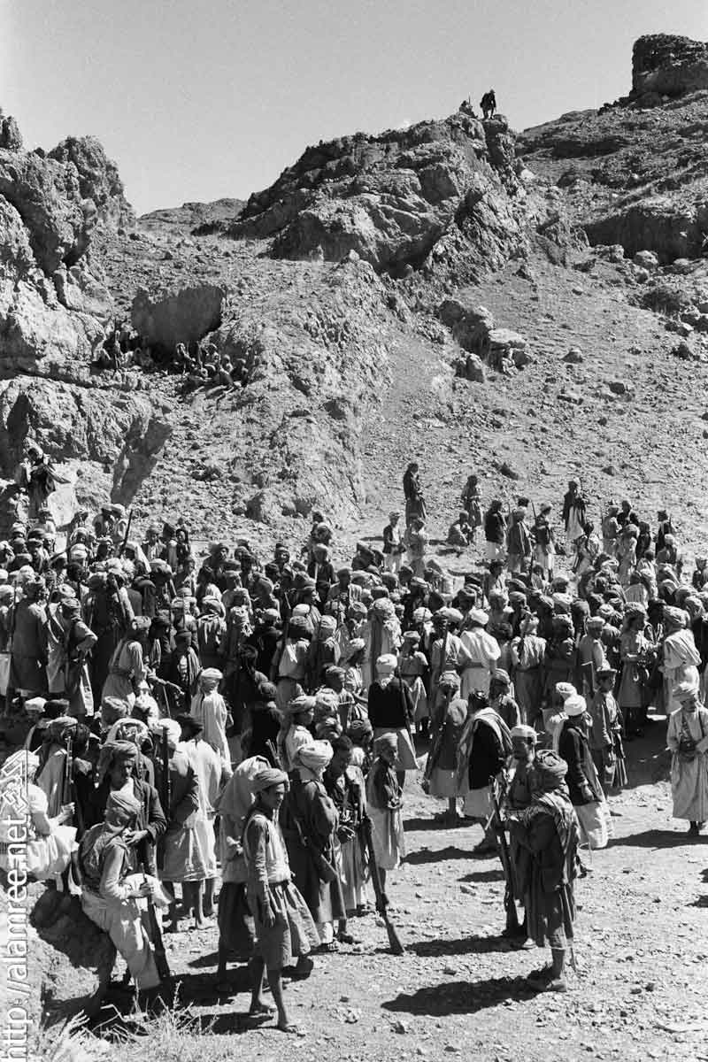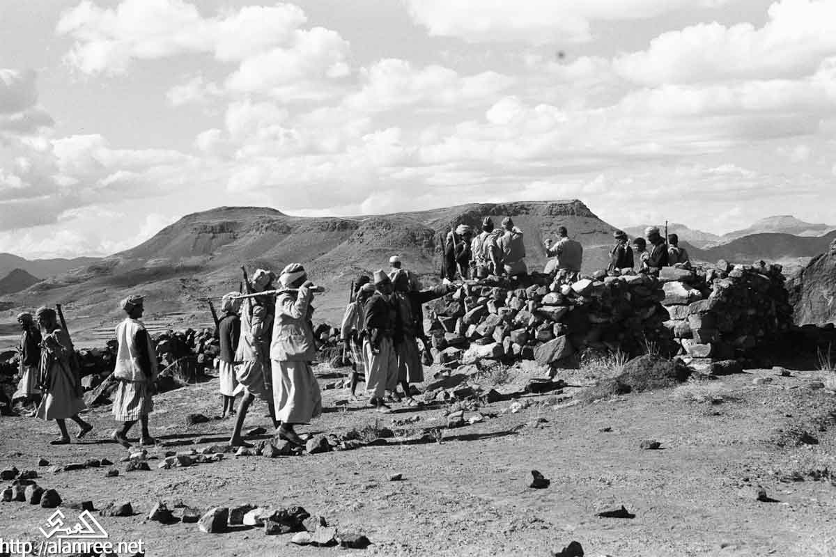 احد معسكرات الملكيين في واد صخري ويلاحظ حشد كبير من القوات الملكيه