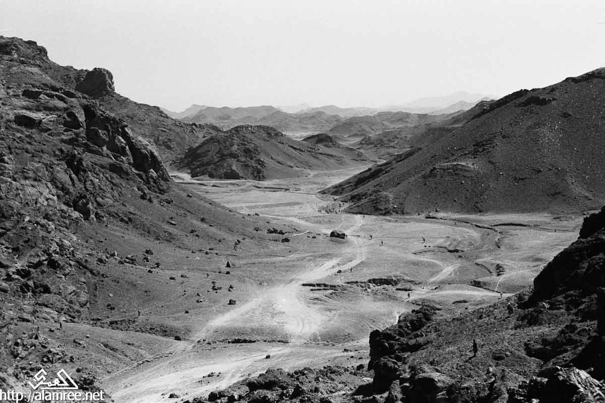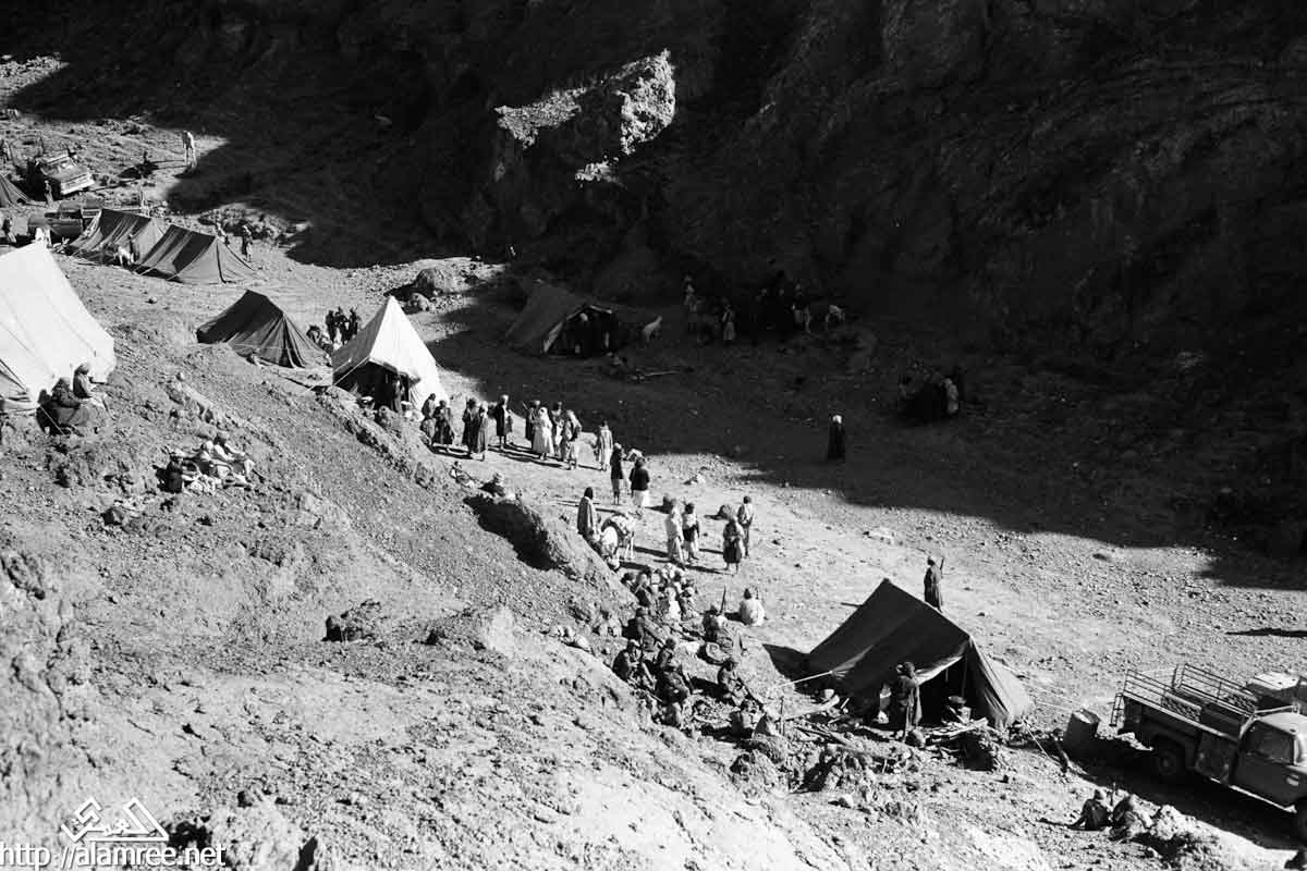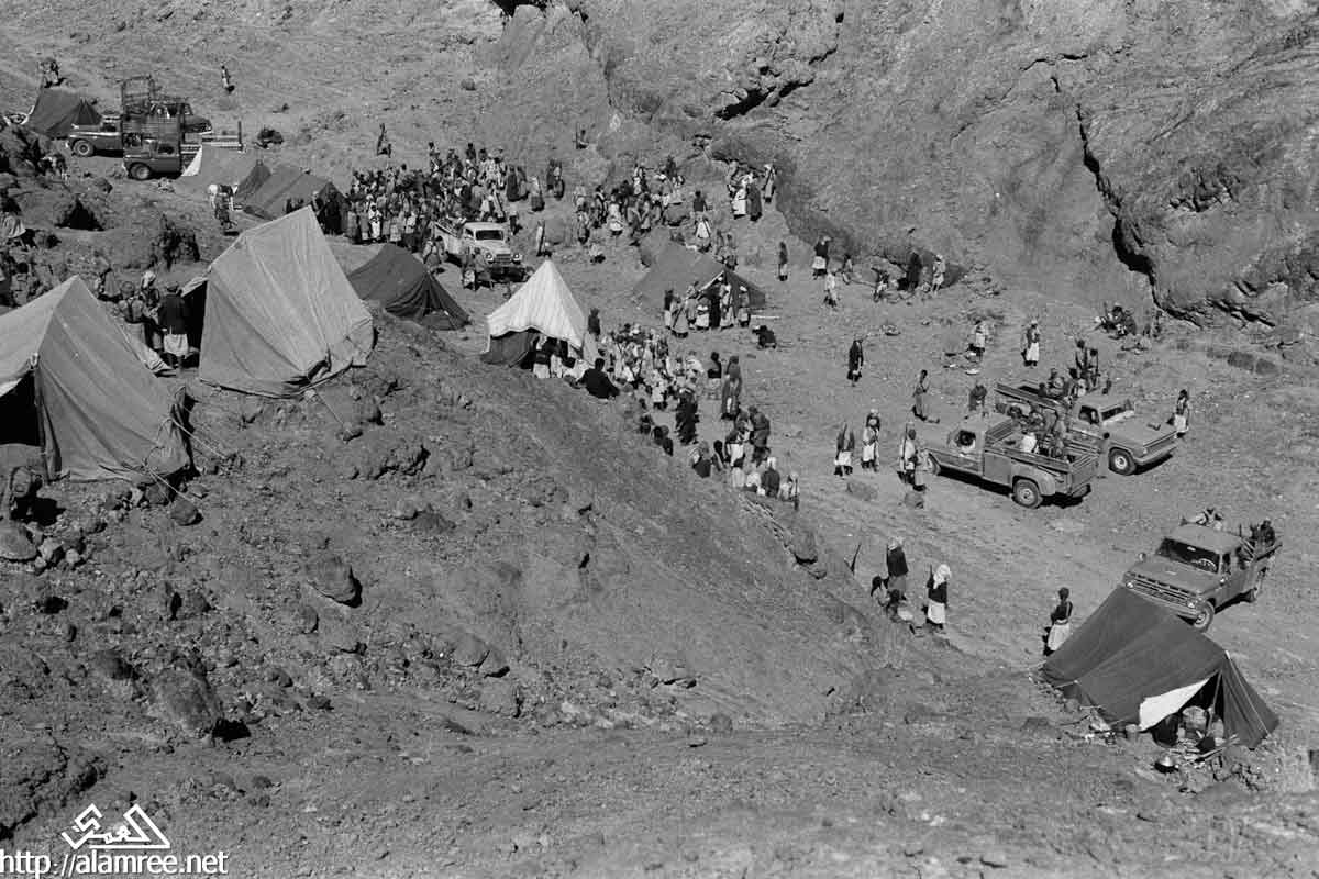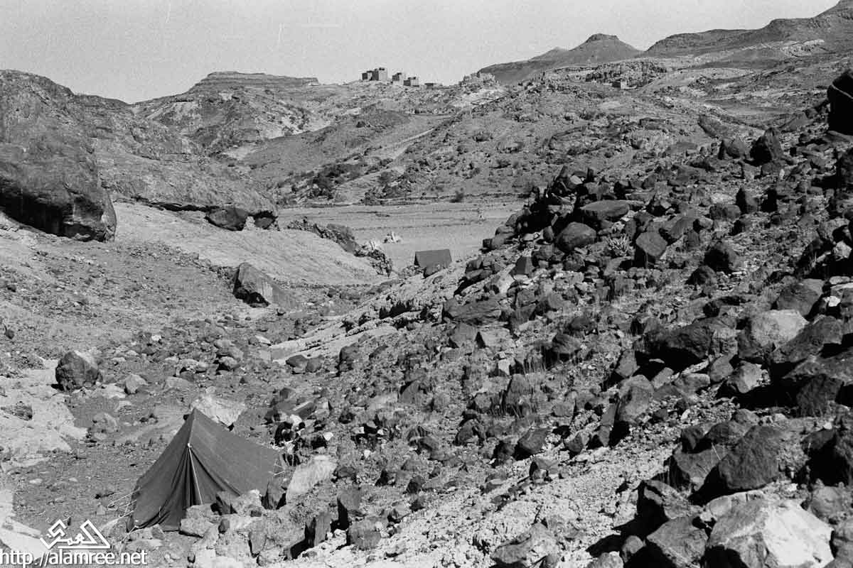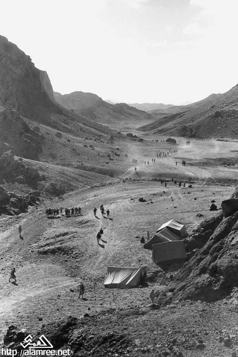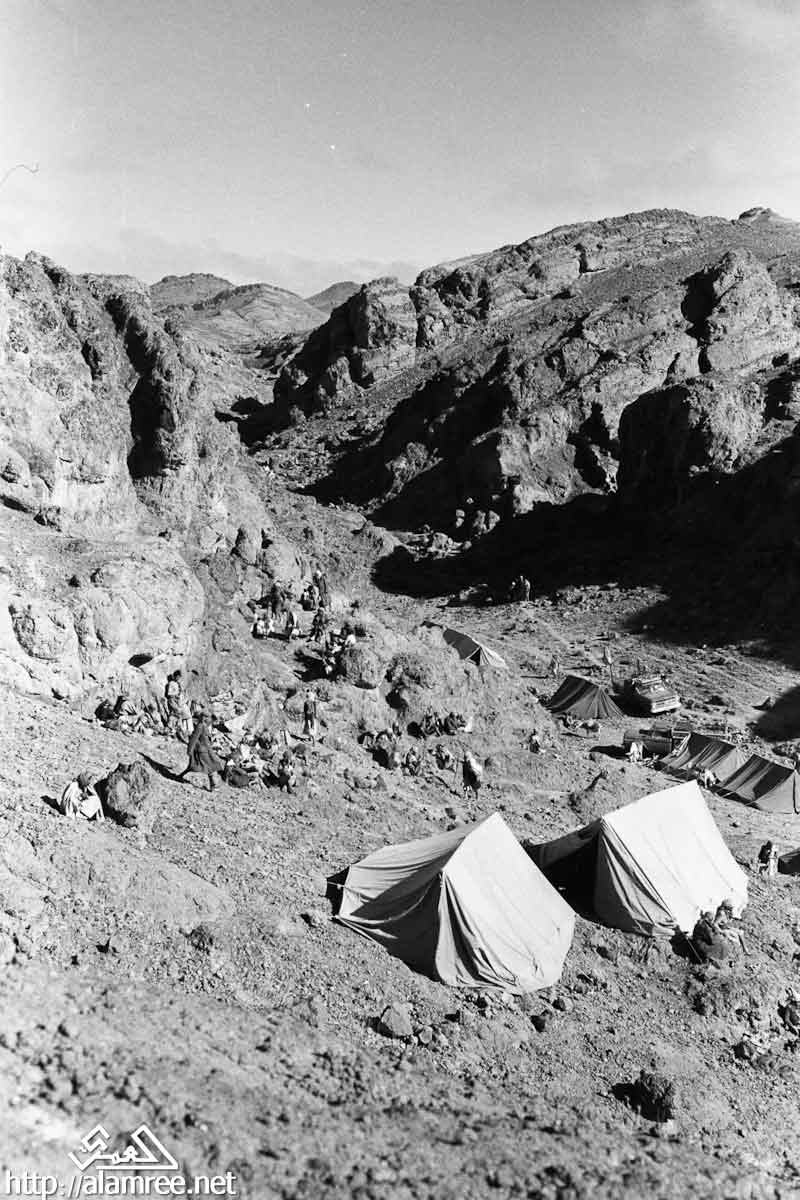 صوره لوادي يعسكر فيه القوات الملكيه ويلاحظ خيام والناس يمشون بينها