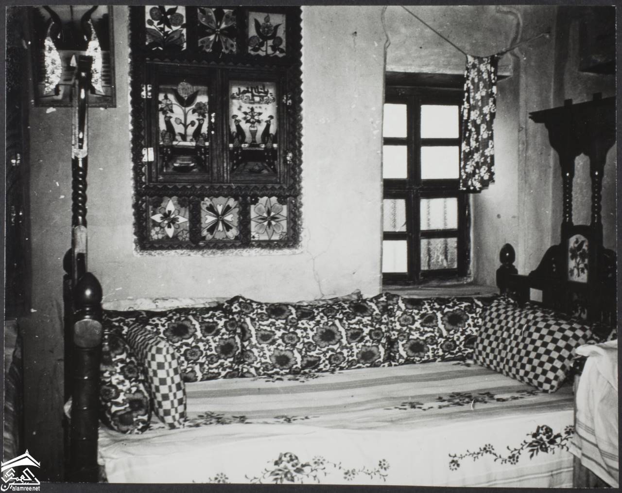 [خزانة من الخشب المخرم تقع داخل غرفة بها