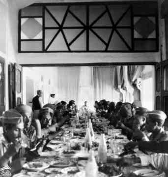 ![]() عبدالله السلال وحسن العمري وعبدالرحمن البيضاني على مائدة طعام في مجلس قيادة الثورة عام 1963م |