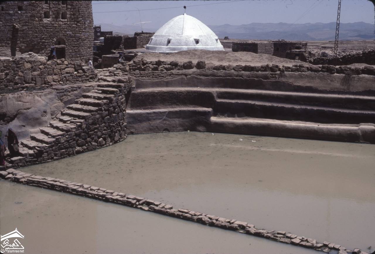 صهريج قرب الجامع الكبير وفي المقدمة احواض الماء وفي الخلفه قبة