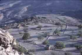 ثلا القلعة. مباني عند سفح نتوء صخري-1971م للمصوره الطبيبة كلودي فايين